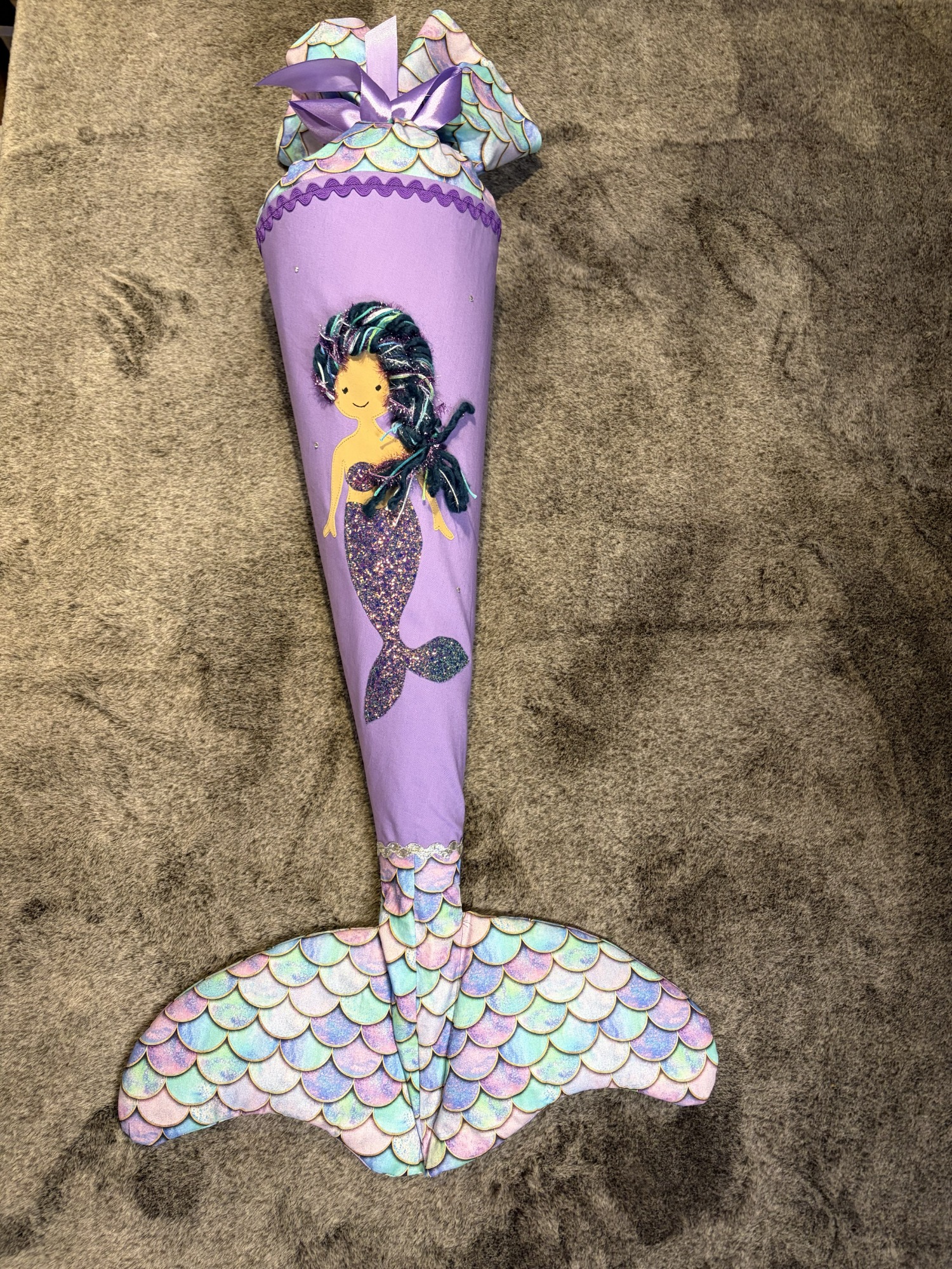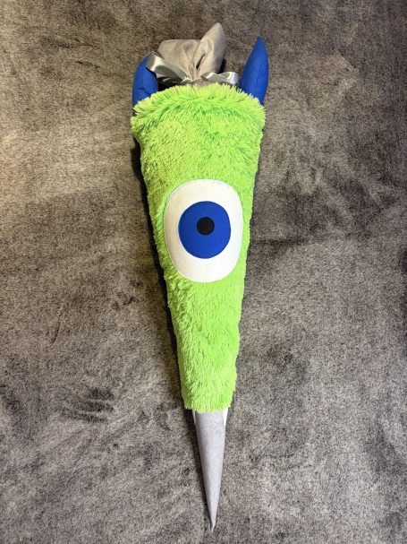 Die „kleine“ Schultüte für das Geschwisterchen ist halb so groß, aber mit genauso viel Liebe zum Detail genäht. Auch hier könnt ihr mir Fotos oder Ideen zuschicken, um beim Entwurf besser nach Euren Wünschen zu arbeiten.
